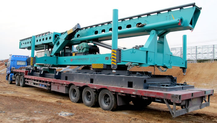 顶部滑轮架采用双重折叠方式,既能满足打桩的需要,又能满足转场运输时不超过运输高度限界,节省运输费用。